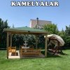 Direkten direğe net 3×3 metre oturum alanı sunan kamelya, saçak ölçüsü olmadan tamamen gerçek kullanım alanını yansıtır. Ahşap aksamlar 1. sınıf sarıçam veya ithal fırınlanmış keresteden üretilmiş olup, tüm yüzeyler vakum-basınç emprenye işlemi ile çürümeye ve böceklenmeye karşı korunmuştur.